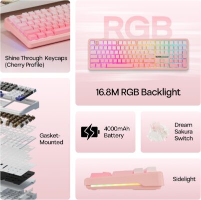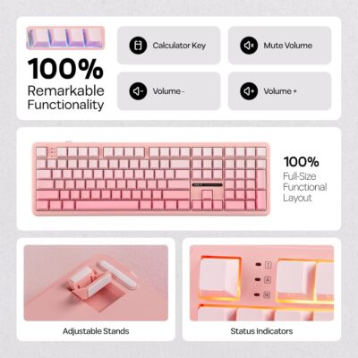 Bàn phím cơ F108 Pink – Full size (3 Mode | Mạch Xuôi | 4000 MAh)