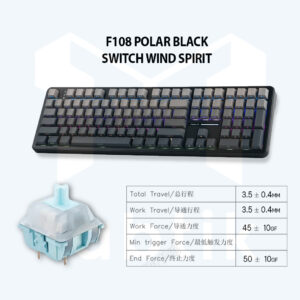 Bàn phím cơ F108 Polar Black Gardient – Full size (3 Mode | Mạch Xuôi | 8000 MAh)