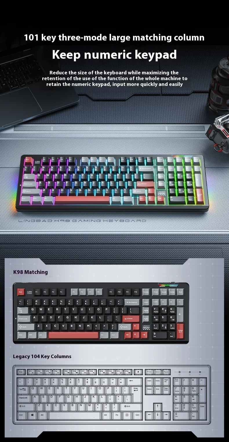 Bàn Phím Cơ Không Dây Gaming Lingbao K98 – 3 Mode | Hot Swap | Led RGB | Gasket Mount