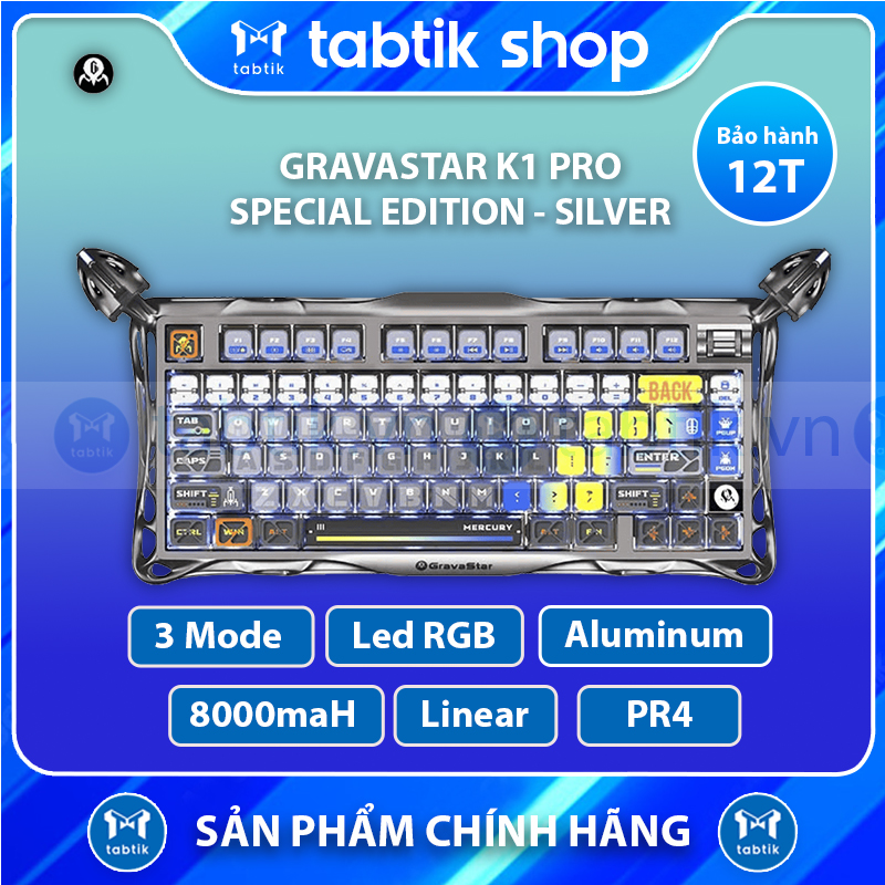 Bàn phím cơ không dây Gravastar Mercury K1 Pro – Interstellar Silver