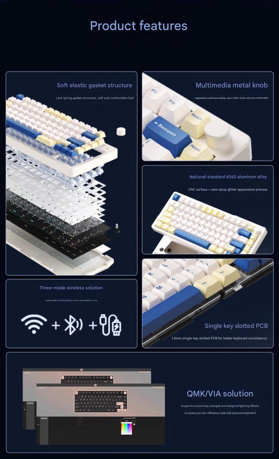 Bàn Phím Cơ Monka A75 Max White – Nhôm (3 Mode | Led RGB | Hot Swap)
