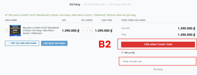 - Bước 1: Bấm nút thêm vào giỏ hàng