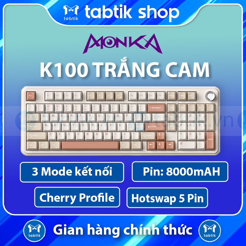 Monka K100 Cam Full Size Led RGB | Mạch Xuôi | 3 Mode 8000mah)